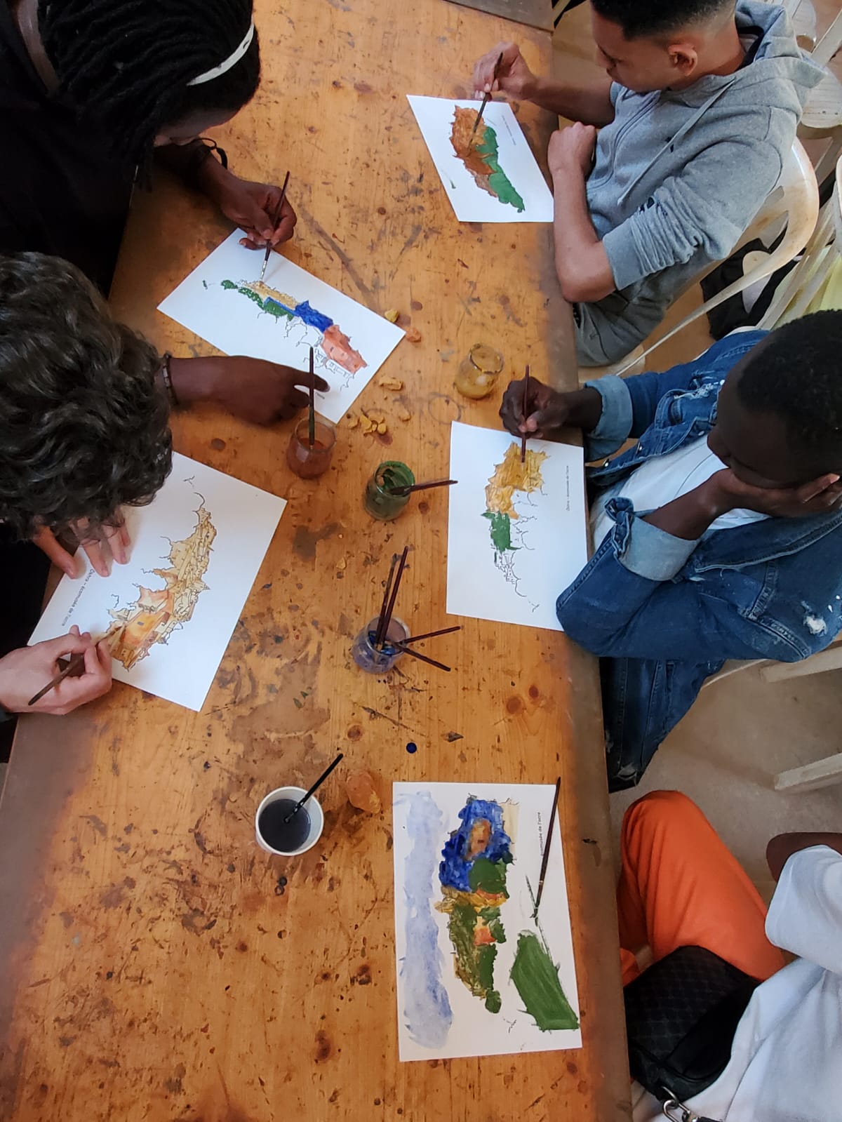 Prochaine étape, essais de peinture et travail avec une artiste peintre sur le projet de fresque.