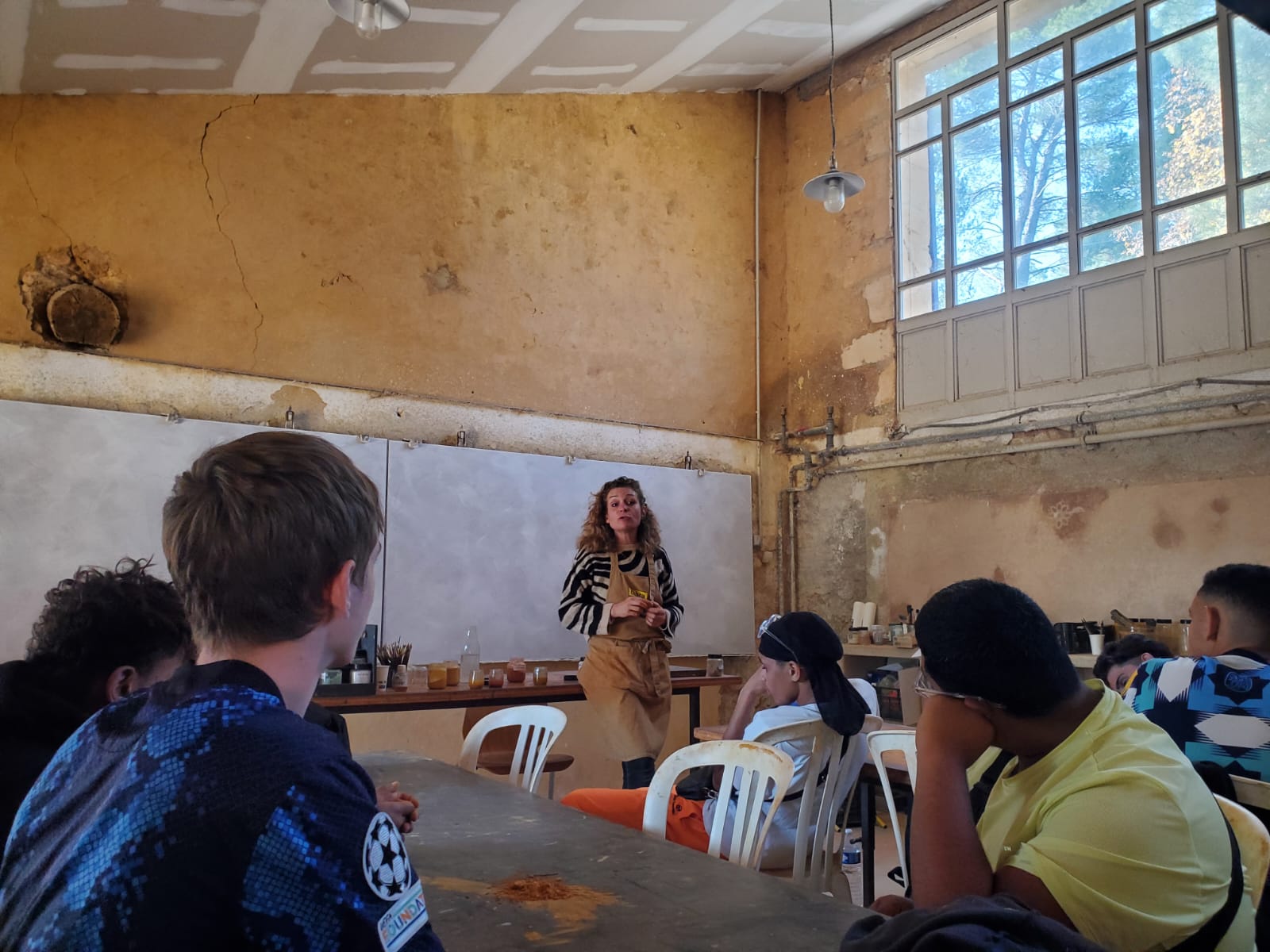 les 1ères et 2èmes années CAP Peintres à la découverte de la fabrication de peintures naturelles à base d'ocres.